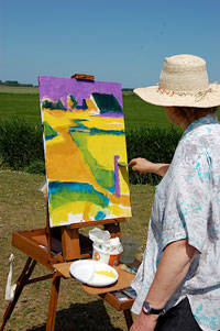 Sinds het voorjaar van 2010 is zij En Plein Air gaan werken. Ze was vastgelopen op haar inhoud en besloot terug te gaan naar de basis: schilderen naar aanschouwing. Meestal in de buurt van Utrecht bij de Forten, maar ook als zij in Amerika (Connecticut en Delaware) op bezoek is bij haar zoon. Het Wad, langs het Reitdiep, Lauwersmeer en Friesland zijn zo langzamerhand geliefde schildersplekken geworden. Het Plein Air schilderen gebeurt met acryl. Acrylverf wordt verdund met water en droogt lekker snel. De kistezel is geheel inklapbaar en voorzien van draagbanden, zodat ze deze als een rugzak kan dragen. Er kunnen 2 doeken op de ezel geklemd; een afneembare fietstas voor de verf, de kwasten, het water en de boterhammen en klaar is het mobiele atelier!
